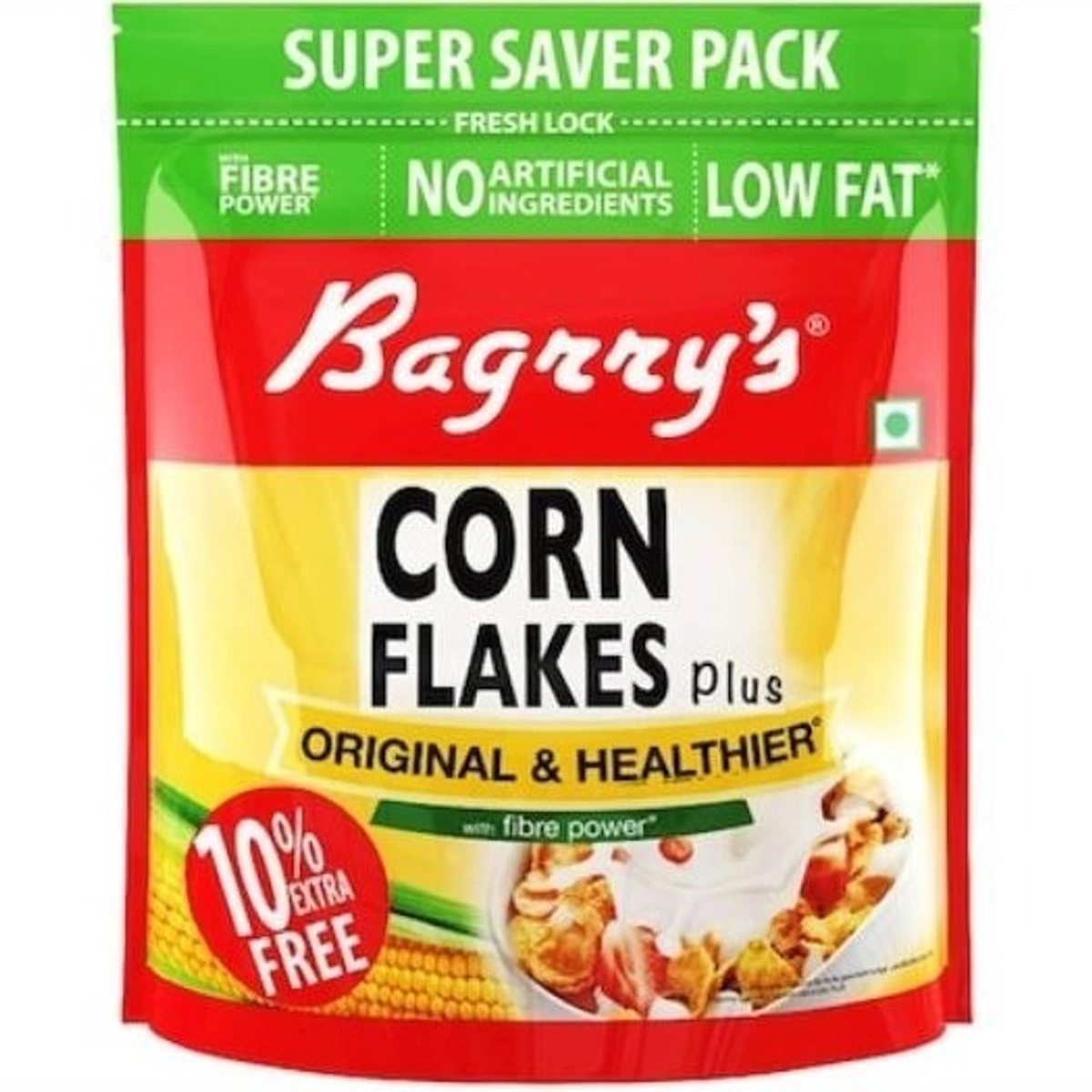 Bagrry's Corn Flakes Plus | Original and Healthier, 800 GM (with Extra 80 g) | Low Fat & Cholesterol | High Fibre | All Natural CornFlakes