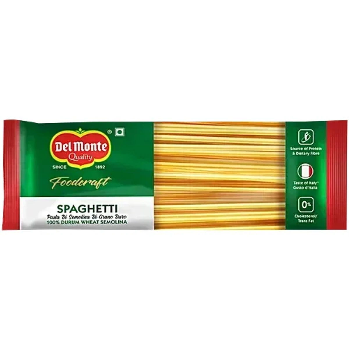 Foodcraft durum wheat Spaghetti pasta is made with high-quality durum wheat semolina, rich in dietary protein and fibre. Manufactured at one of the largest and state-of-the-art pasta plants in India, it is exceptionally healthy and nutritious, keeps you satiated for hours, and is simply delicious. Relish this pasta with your favourite choice of sauce or toss it with vegetables to make a healthy salad, or mix it with Del Monte's authentic pizza pasta sauce for a delicious meal that tickles your taste buds.