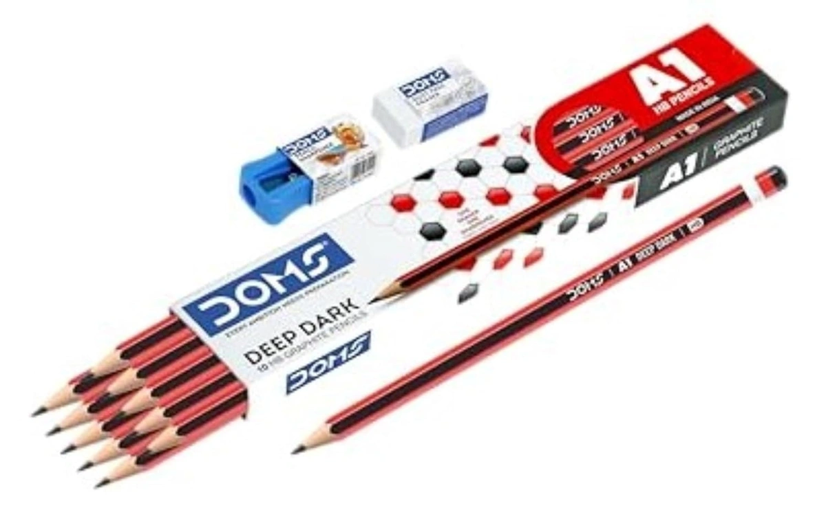 Doms A1 Dark Graphite Pencil With Free Eraser & Sharpner 10 Pc