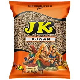 JK Ajwain seeds are egg-shaped and grey in colour. Ajwain is one of the main herbs for the Indian kitchen to make Indian cuisine delicious. Ajwain seeds are small in size but flavour hot, penchant and pungent. The high concentration of necessary oils in ajwain seeds, primarily thymol, provides them with a smell and flavour resembling thyme, with a stronger bite. It acts as a superior appetizer, laxative and stomachic. It is one of the important herbs for the Indian kitchen to make Indian cuisine tasty.