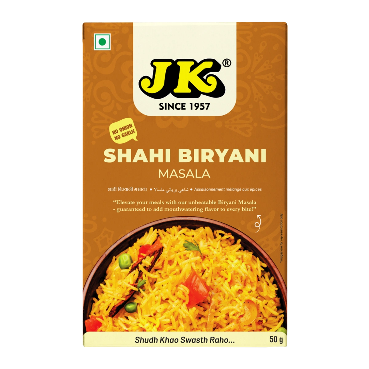 JK Shahi Biryani Masala gives a deep and exotic flavour to the rice while cutting down the need to use any other spice. Buy Biryani Masala Online.