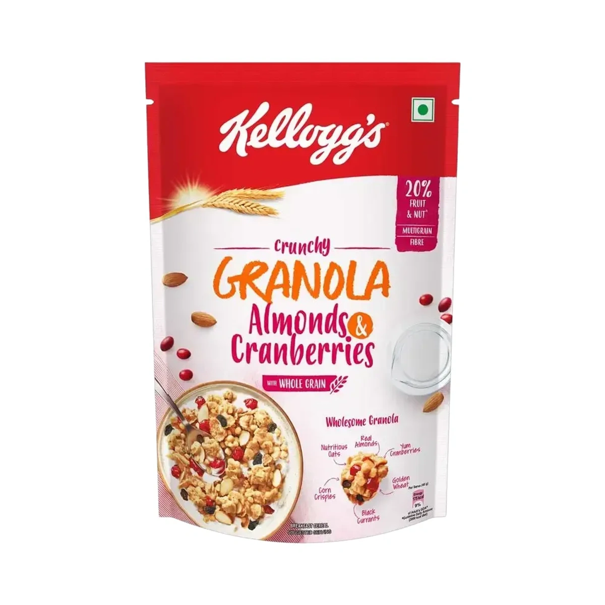 Experience the perfect crunch of oven-baked multigrains in every bite. Loaded with the goodness of oats, wheat, and real almonds, this wholesome breakfast delights your palate. Kellogg's Crunchy Granola offers an irresistible texture and rich taste, making your morning bowl truly satisfying.