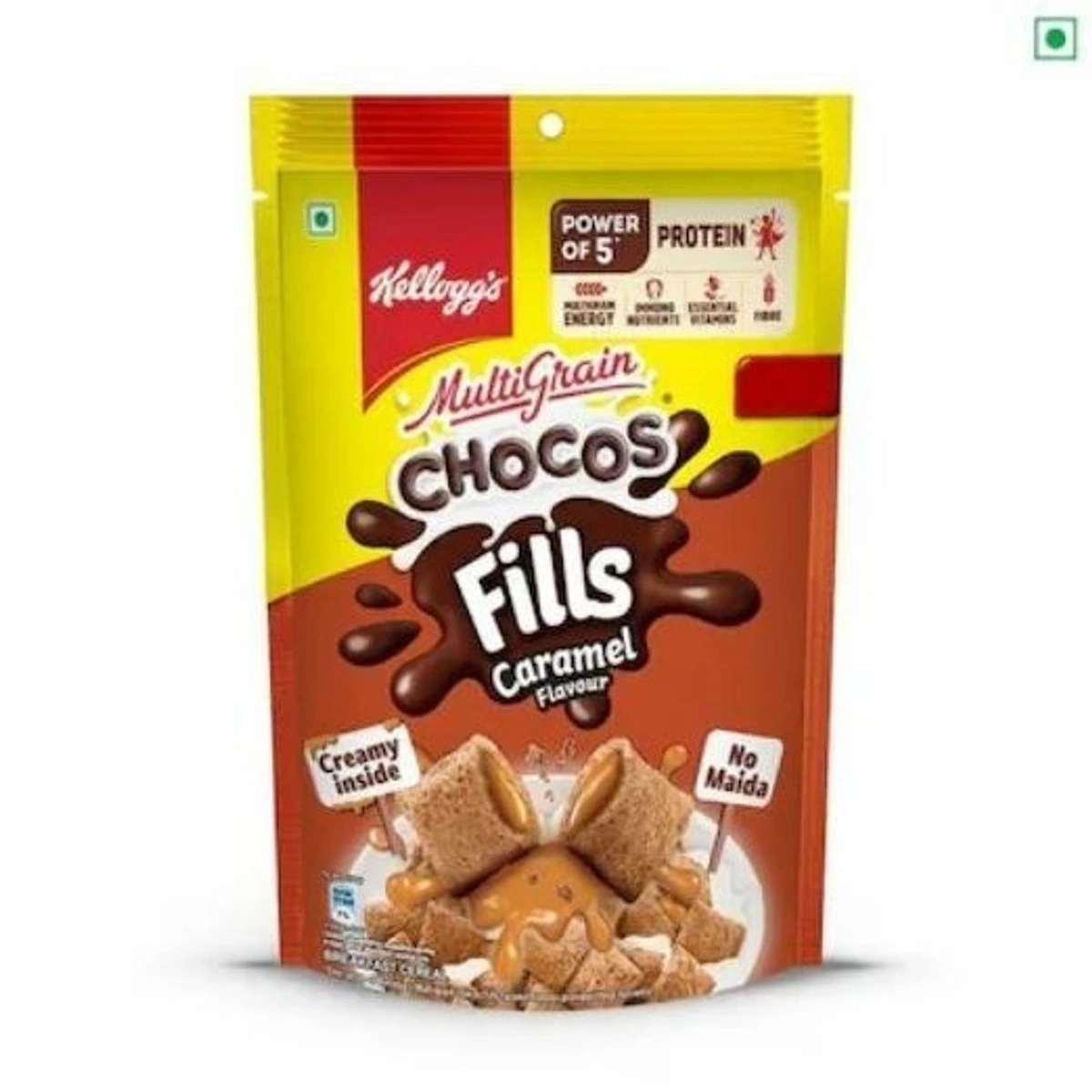 Delight your taste buds with Kellogg's Multigrain Chocos Caramel Flavour Fills a crunchy snack with a gooey caramel center. Made with the goodness of multigrains, this tasty treat is a source of fibre and essential nutrients. Perfect for breakfast, school tiffins, or an anytime snack, it combines the fun of chocolatey crunch with the sweetness of caramel in every bite. So what are you waiting for? Go ahead and buy this product online today!
