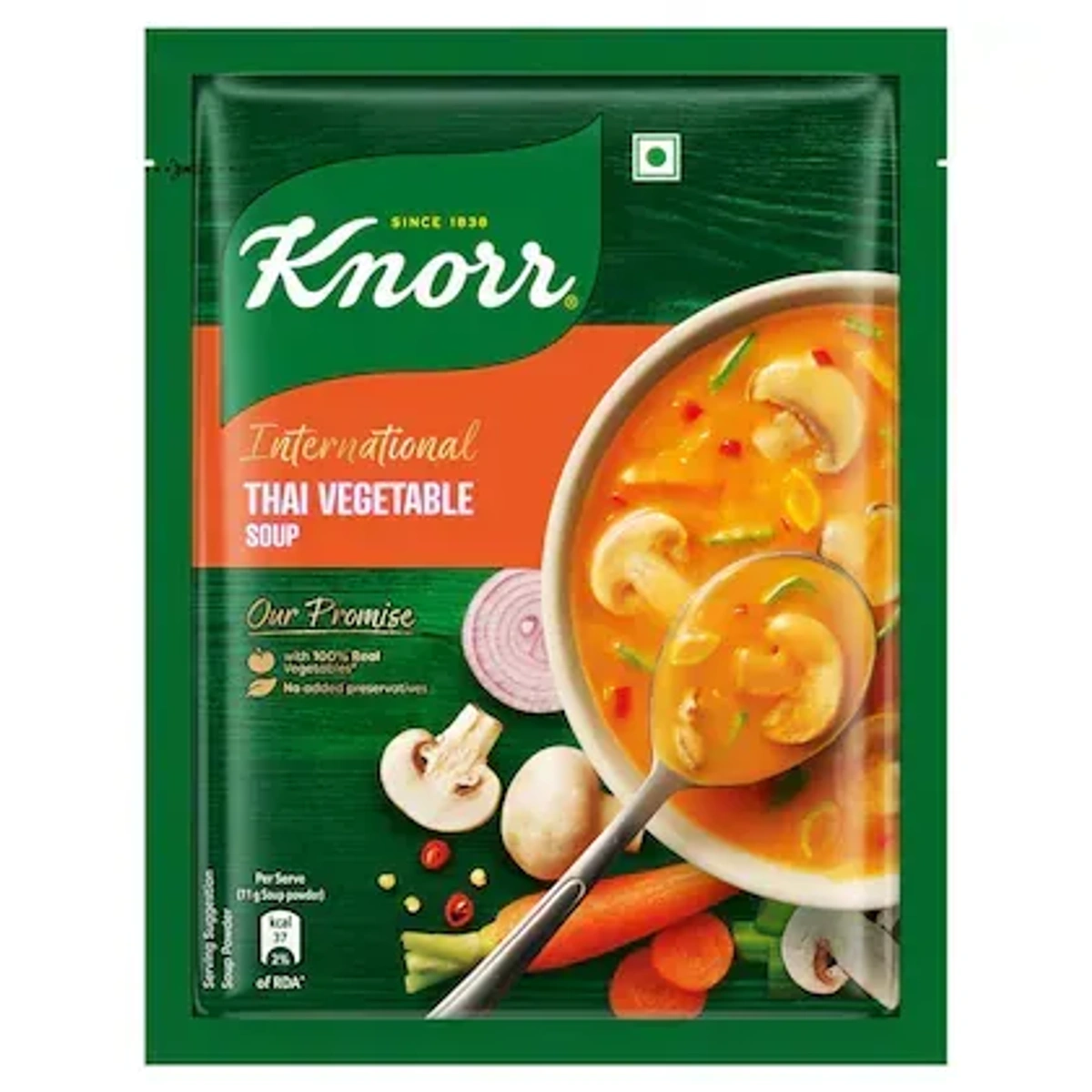 Knorr has hand-picked the best quality vegetables and mixed them with spices to make delicious Knorr International Thai Vegetable Instant Soup. An exciting blend of choicest ingredients like carrots, mushrooms, lemongrass and ginger bits come together to satiate your craving for zesty Thai flavours. So buy Knorr International Thai Vegetable Instant Soup online today!
