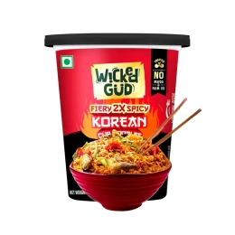 Craving a bold, fiery kick wherever you are? WickedGud Fiery 2X Spicy Korean Cup Noodles bring you the perfect blend of authentic Asian flavors with a healthy twist. Made with whole wheat, these noodles are a guilt-free indulgence ready in just minutes