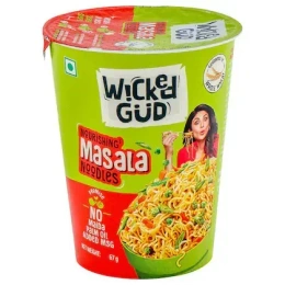 WickedGud Masala Cup Noodles - 67g Get ready to spice up your mealtime with the bold flavors of WickedGud's Masala Cup Noodles! These delicious cups are packed with the perfect blend of Indian-inspired spices, herbs, and seasonings that will transport you straight to the streets of Mumbai. With a rich, slightly sweet aroma and a flavor profile that balances the heat of cumin, coriander, and turmeric, every bite is an explosion of taste on your palate. Made with high-quality noodles and infused with the authentic flavors of Indian cuisine, WickedGud Masala Cup Noodles are the perfect comfort food for any occasion. Simply boil the water, mix in the contents of the cup, and enjoy a satisfying meal that will leave you wanting more! (Approx. 67g serving size) So go ahead and buy this product online today